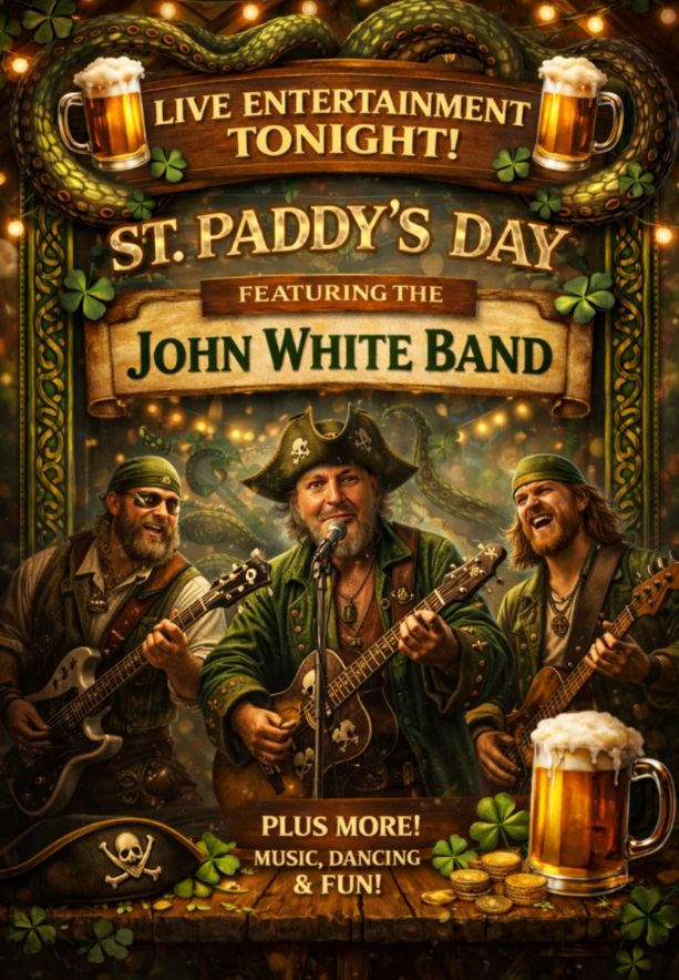 All day Tuesday, March 17th, 2026, we are having a St. Paddy’s Day Party! Join us for live music from John White Band starting at 9:00pm, all day specials, and more! https://krakenpcb.com/wp-content/uploads/2026/03/st-paddys-day-finished.mp4