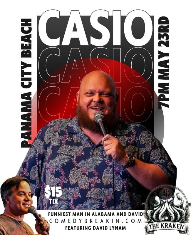 The funniest man in Alabama is coming to Panama City Beach, Florida on May 23rd, 2026 at 7:00pm! Don’t miss out on Casio’s show at The Kraken! Featuring David Lynam. $15 per ticket, ticket sales coming soon on Eventbrite – stay tuned!